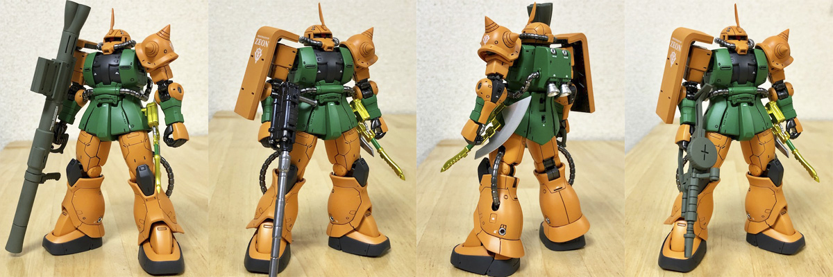 ガルマ専用ザクIIをオリジンのキットとHGUCガルマ専用ザクIIを使用して製作しました。形状変更は頭部機銃の造形とツノの移植くらいです。