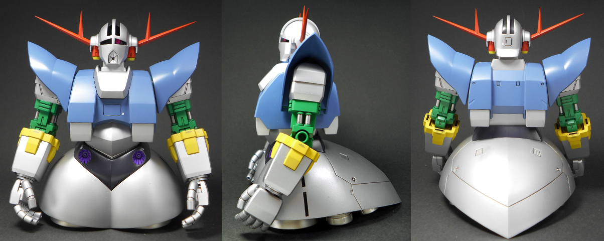 本体は肩の端部をかっこよくし、表面の凹みや謎の面繋ぎを修正、可動式モノアイを新造しました。アンテナもプラ材を貼り足して鋭くしています。
